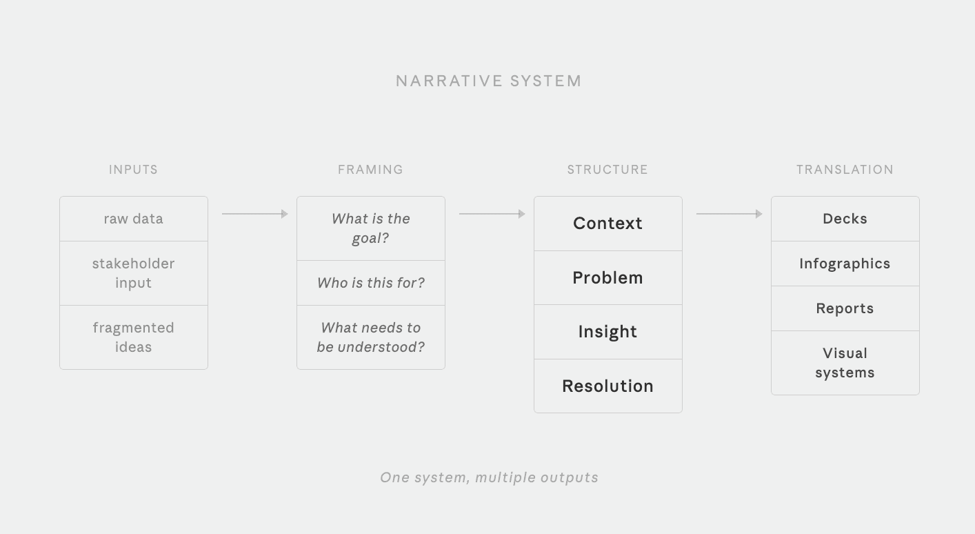 Overview I design visual narratives that turn complex, unstructured information into clear communication.