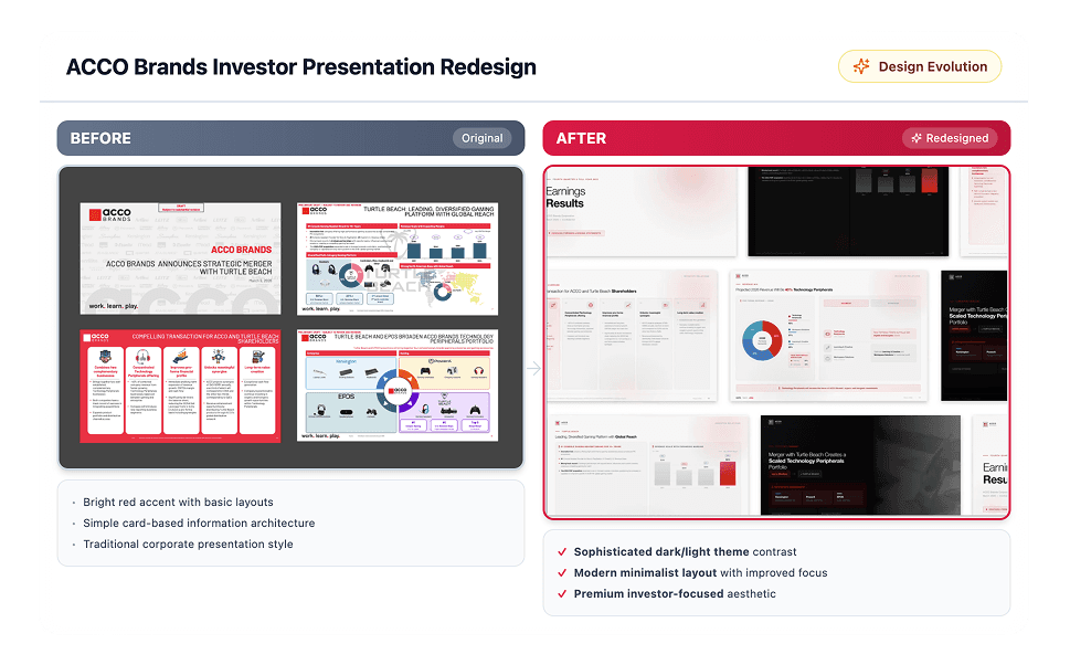 The focus was on making decks usable in real contexts—presentations, internal reviews, and client distribution.